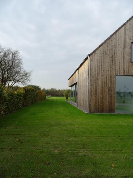 Op een prachtig kavel in het buitengebied hebben we een villa gerealiseerd in de stijl van een moderne woonschuur. De constructie is in stalen spanten met houtskeletbouw en de buitengevel wordt volledig in houten delen afgewerkt.